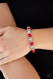 A collection of silver accents and fiery red stones are threaded along a stretchy band for a seasonal look.