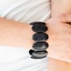 Chiseled into smooth ovals, earthy black stones are threaded along stretchy elastic bands around the wrist for an artisan inspired look.
