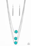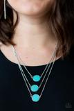Three flat turquoise stones are pressed into sleek silver frames and layered below the collar for a chic finish. Features an adjustable clasp closure.