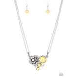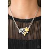 Featuring dazzling white rhinestones and sunny yellow stone centers, a collection of shimmery silver floral frames join below the collar for a seasonal look. Features an adjustable clasp closure.